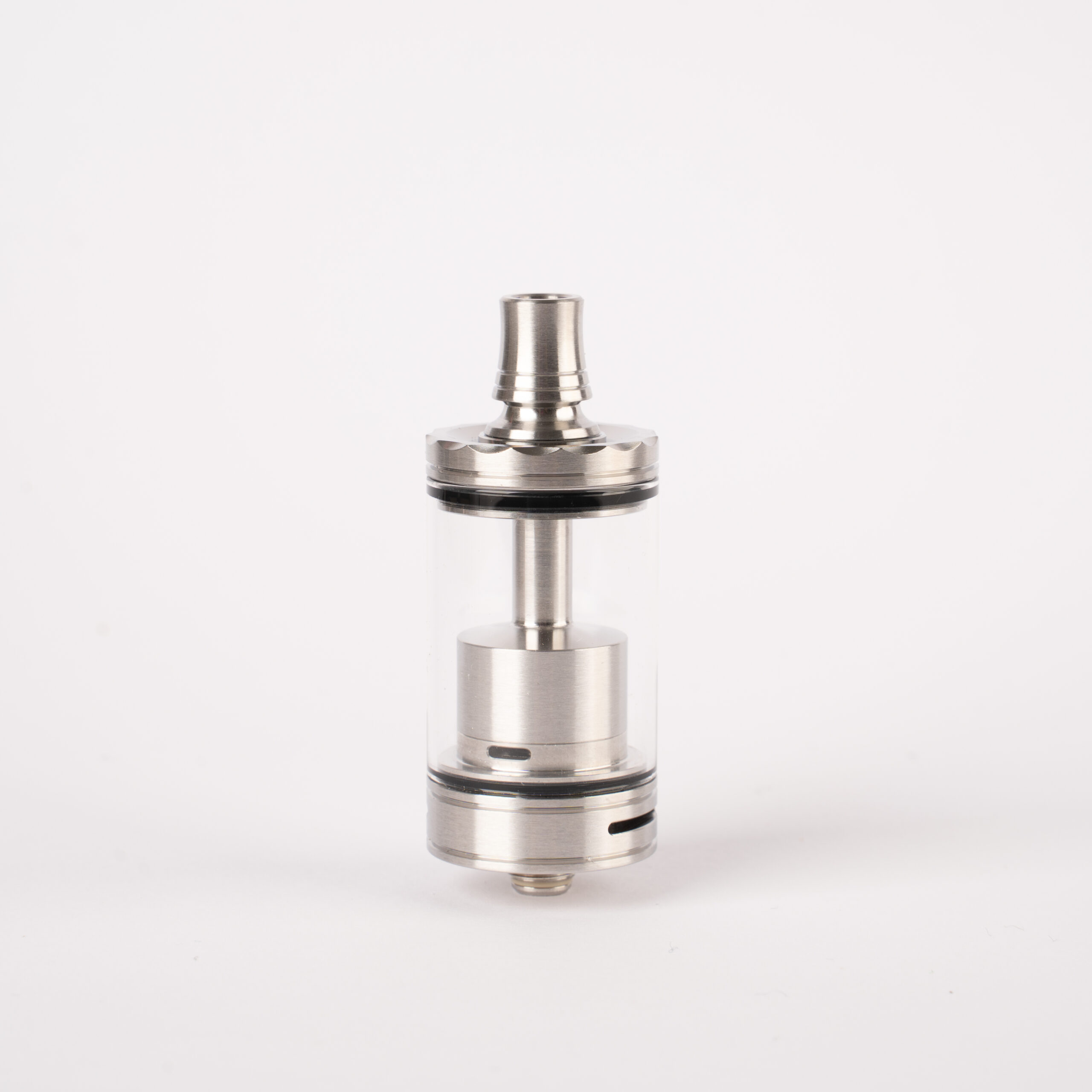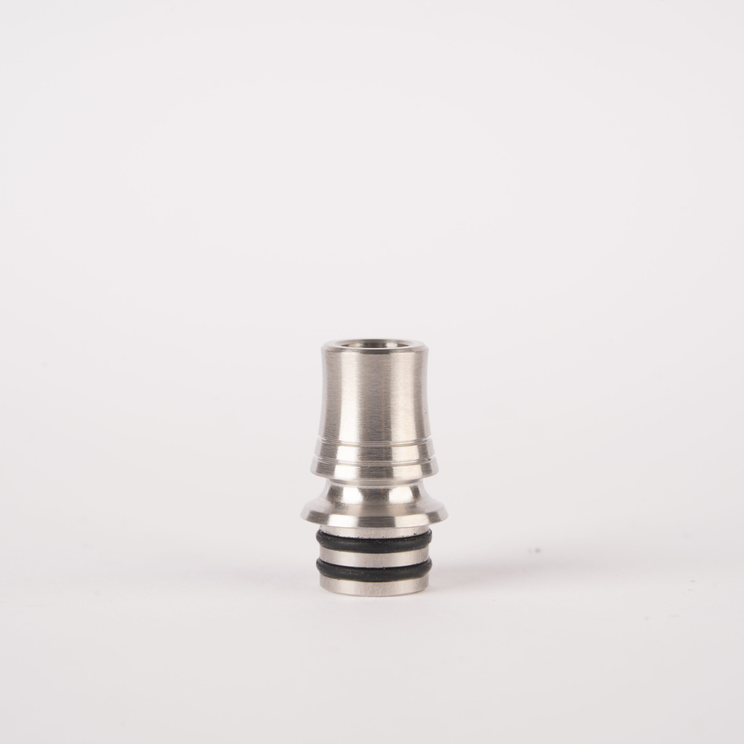 Drip-Tip: SS316L spazzolato, diametro 11,5 mm, lunghezza parte visibile 13,5 mm, foro interno 5,5 mm.