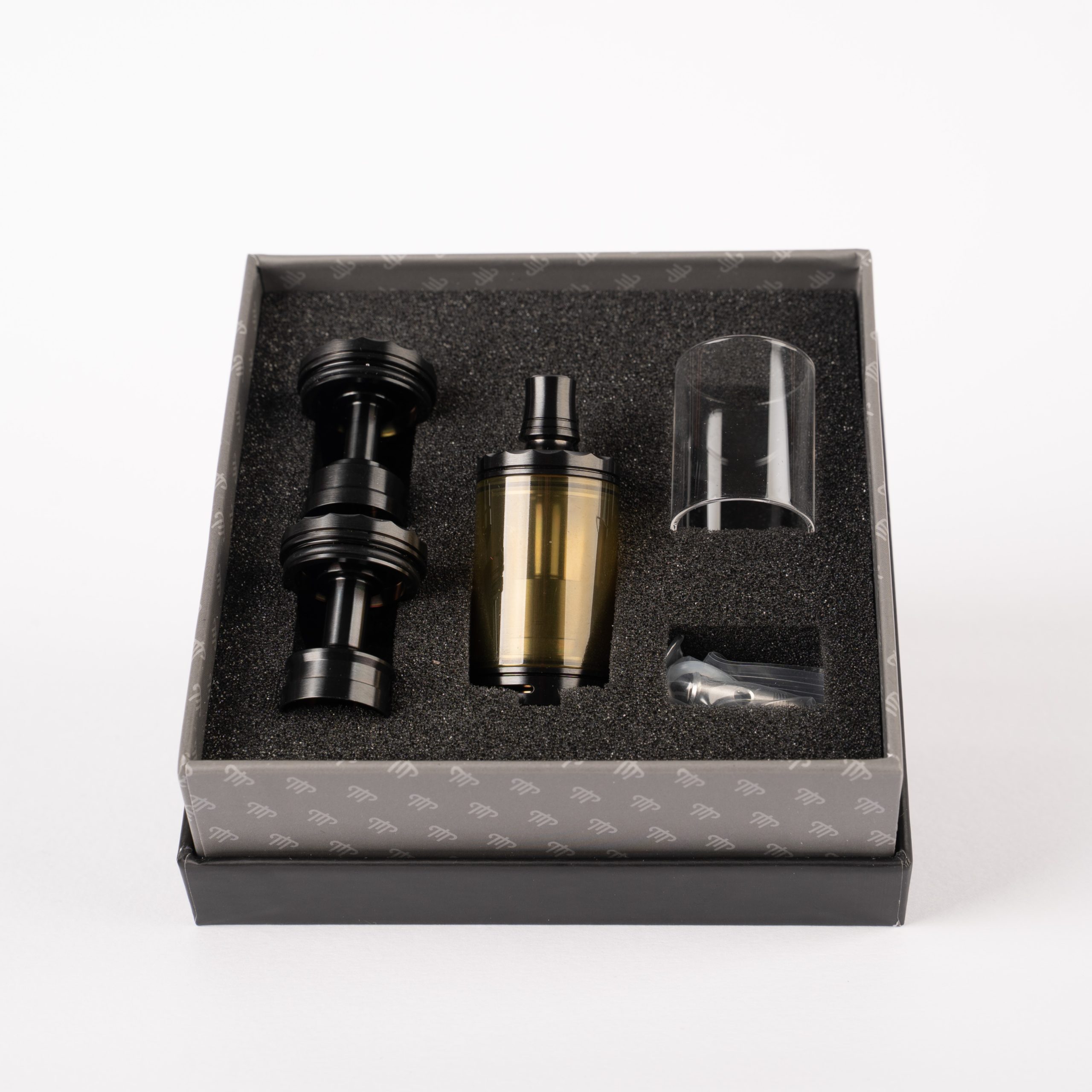 La compattezza e la semplicità consentono una facile pulizia e rigenerazione. Viene fornito con tre diverse campane. È inoltre dotato di un airpin da 3 mm e ne viene fornito uno extra da 4 mm a scelta tra RDL o DL. Il sistema di riempimento dal basso garantisce una ricarica pulita, veloce e a prova di perdite.